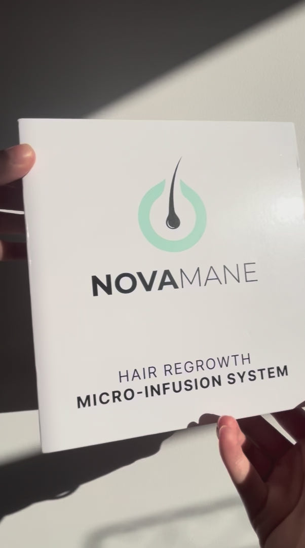 NovaMane combines micro-infusion technology with 18 clinically-studied ingredients. The needles create temporary micro-channels that deliver our serum directly to dormant follicles, bypassing the skin's barriers. This triggers natural healing responses, increases blood flow, and reactivates hair growth - all without drugs or chemicals.